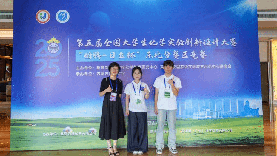 近日,在2025年第五届全国大学生化学实验创新设计大赛中,化学学院学生刘洋雨昕、王禹研、徐杨,在白鹤龙、付伟伟老师的指导下,荣获全国二等奖、东北赛区一等奖。刷新了学校在该赛事近五年的记录。